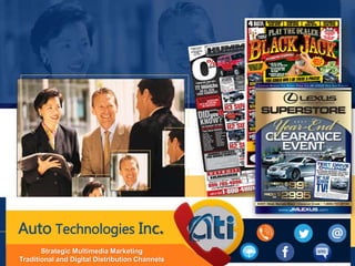 Auto Technologies Inc. provides strategic multimedia marketing services for auto dealerships using traditional and digital distribution channels. Their services include mailers, email campaigns, social media advertising, and interactive marketing events to generate traffic and sales. They target consumers across multiple media platforms to increase brand awareness and stimulate responses from customers.