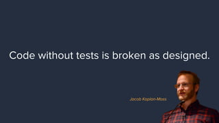 This document discusses pytest, a Python testing tool. It provides 3 key benefits over unittest: 1) Detailed info on failing assertions without remembering names; 2) Automatic discovery of test modules and functions; 3) Modular fixtures for managing test resources. Fixtures provide reusable resources for tests and can be parameterized. The conftest.py file allows sharing fixtures across files. Plugins like pytest-django provide Django-specific fixtures. Mocking libraries like responses and aioresponses allow mocking HTTP requests in tests. Tox can run tests across multiple Python environments.
