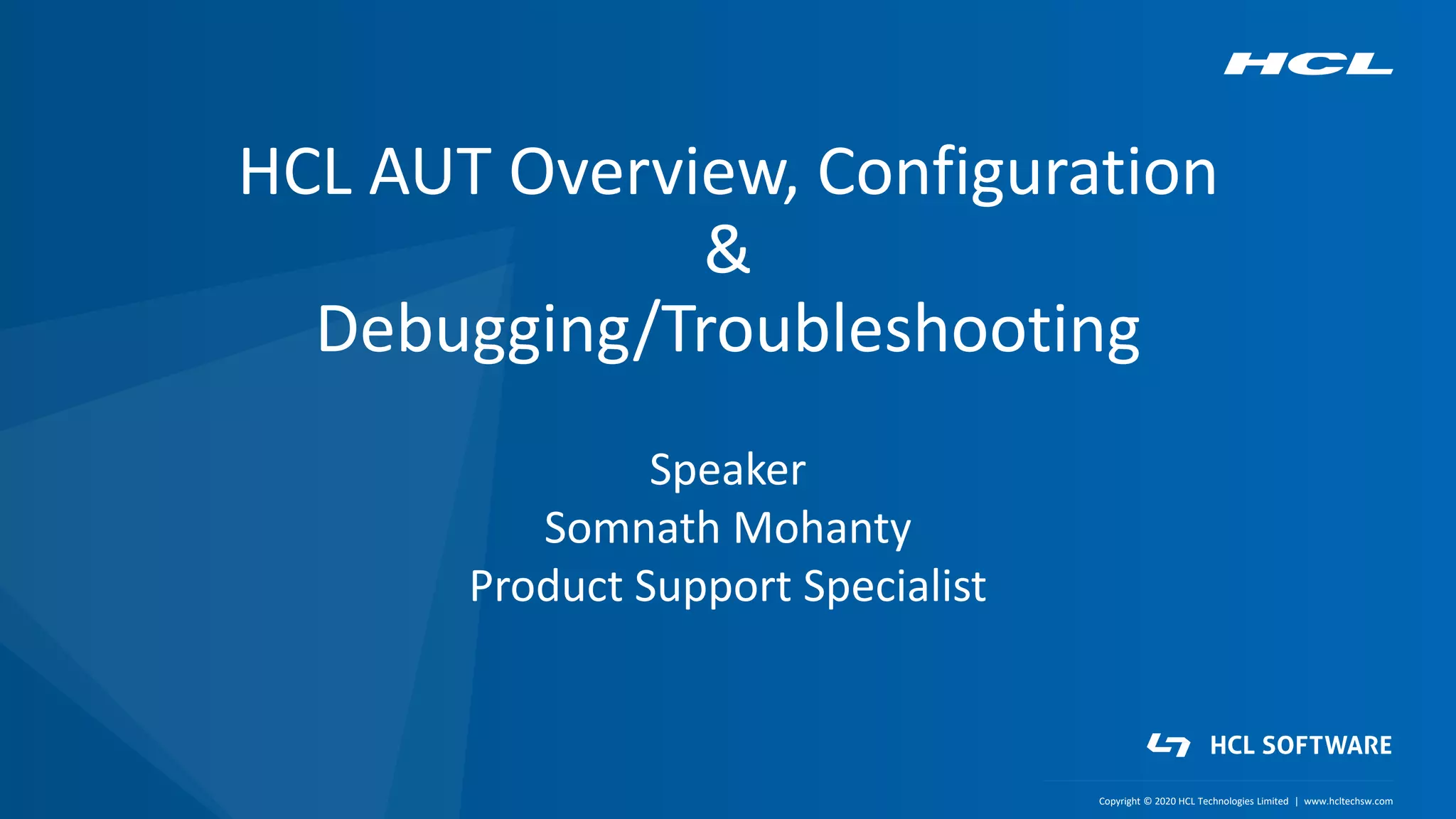 The document provides an overview of HCL's Auto Update Tool (AUT) which automates the Notes client upgrade process. It discusses the AUT architecture and components, how to configure the AUT server and catalog, set up desktop policies, and the end-to-end upgrade process. Troubleshooting tips are also provided such as enabling debug logs and checking the AUT catalog database and logs to diagnose issues.