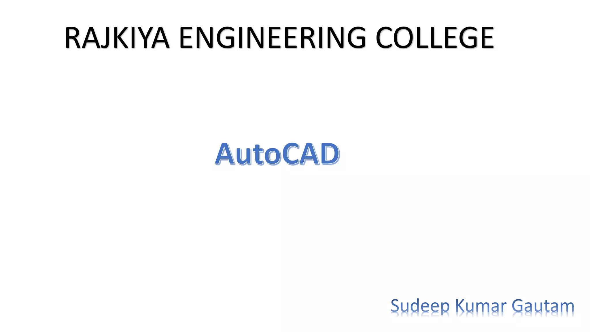 1. AutoCAD is 2D and 3D modeling software developed by Autodesk for computer aided design (CAD). It allows for precise drawing and modeling with benefits like improved productivity and accuracy.