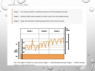 Autogenic drainage (AD) is a self-directed breathing technique that helps patients clear bronchial secretions by moving through three phases: 'unsticking', 'collecting', and 'evacuating'. It requires no equipment, but necessitates good proprioceptive and auditory feedback, making it suitable for adolescents and adults rather than young children. While beneficial for various patients, AD requires practice, self-discipline, and is not ideal during acute pulmonary exacerbations.