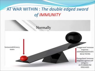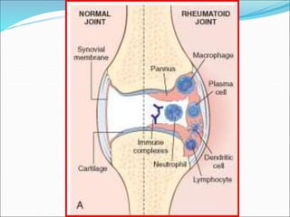 The document discusses several autoimmune diseases including systemic lupus erythematosus, rheumatoid arthritis, Sjögren's syndrome, systemic sclerosis, and mixed connective tissue disease. It provides details on the pathogenesis, clinical features, immunological characteristics, and morphology of these conditions. Autoimmune diseases result from a loss of tolerance to self-antigens and can involve deregulated immune responses against tissues and organs, leading to inflammation and damage.