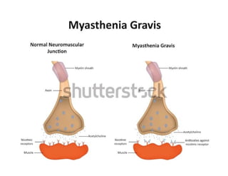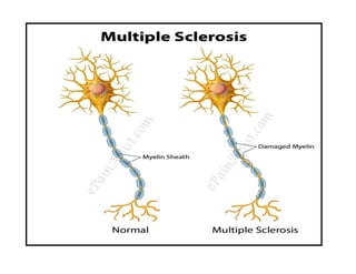 This document discusses three autoimmune nervous system disorders: multiple sclerosis (MS), myasthenia gravis, and Guillain-Barré syndrome. Each condition is characterized by an immune system attack that affects nerve communication, resulting in various symptoms and impaired functionality. While there is no cure for these disorders, treatments aim to manage symptoms and slow progression.