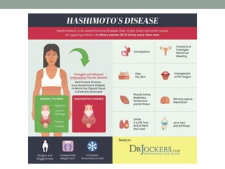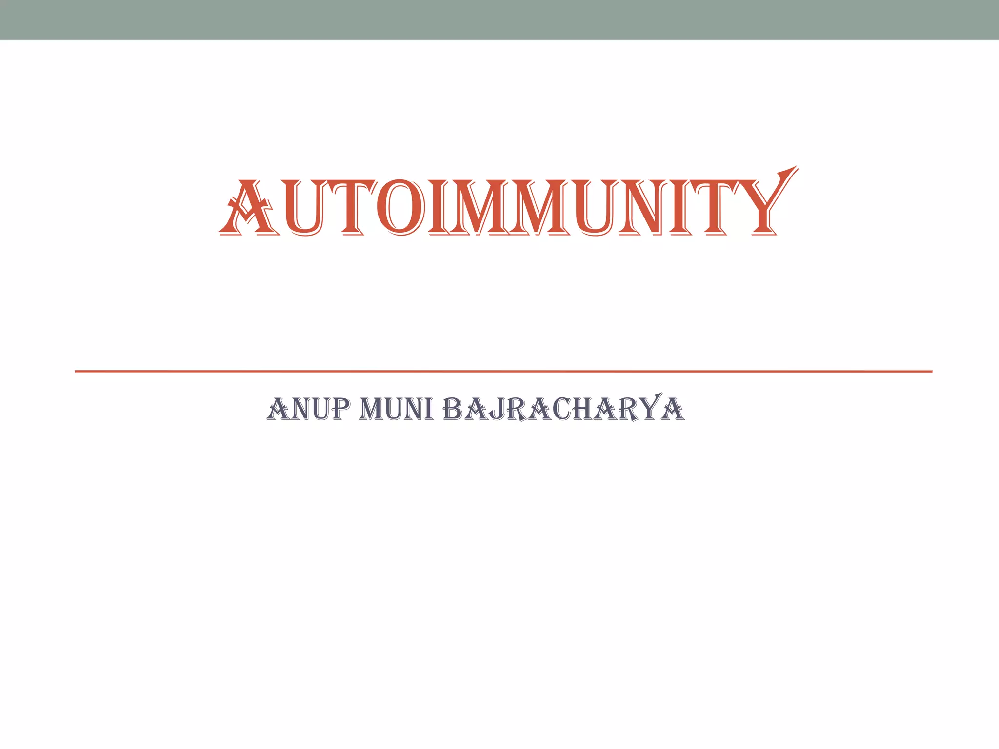 Autoimmunity is a condition where the body's immune system mistakenly attacks its own cells, leading to various autoimmune diseases classified as organ-specific or systemic. Common examples include type 1 diabetes, systemic lupus erythematosus, and Hashimoto's thyroiditis, each with distinct effects on the body. Factors contributing to autoimmunity include hidden antigens, molecular changes in tissues, and molecular mimicry from infectious agents.