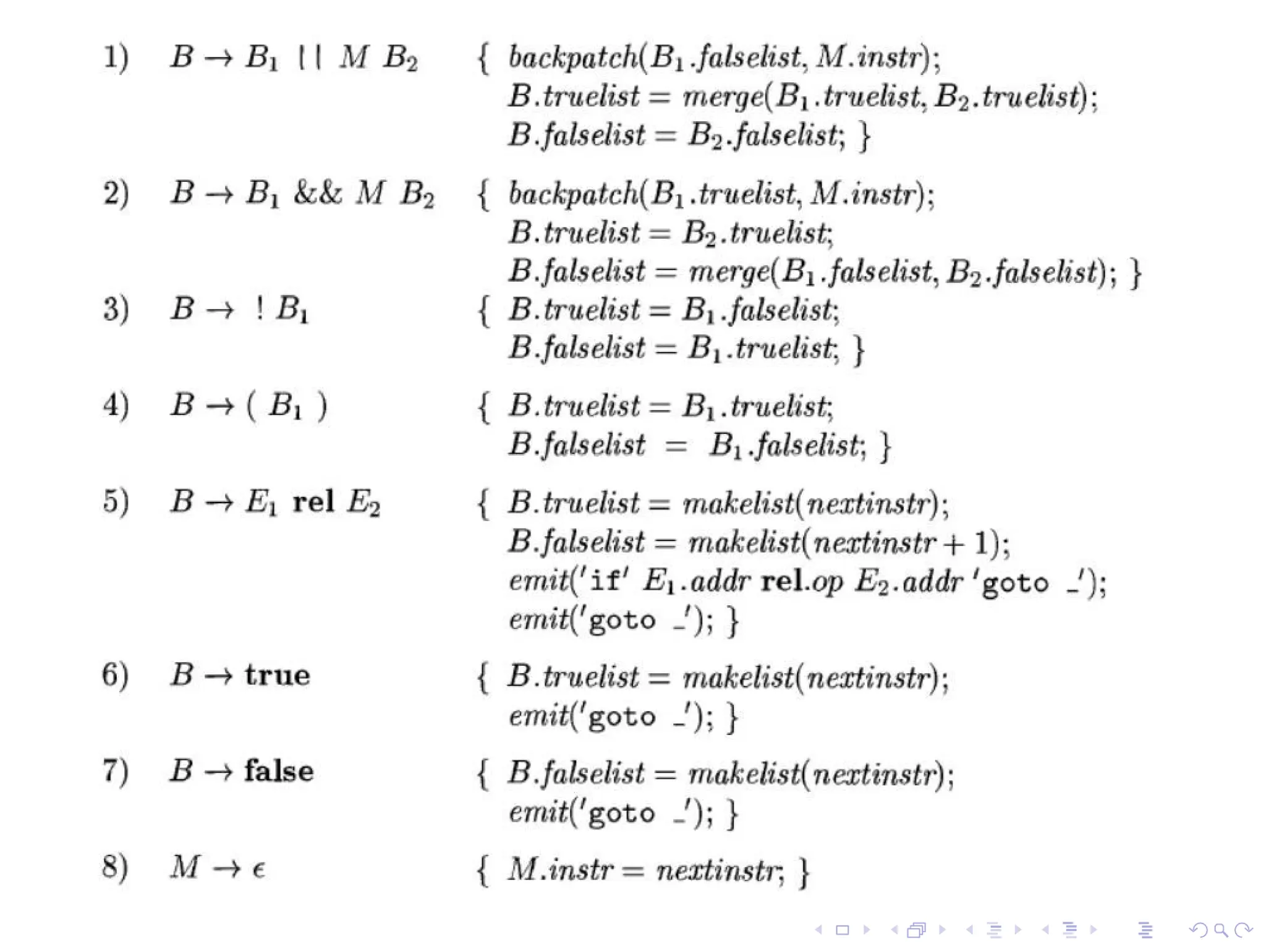 The document discusses intermediate-code generation, focusing on three-address code, particularly quadruples and triples, which represent expressions and control flow in programming. It outlines the distinctive aspects of static single-assignment (SSA) form, various data type representations, and how declarations and expressions are handled, along with their corresponding storage layouts. Additionally, it elaborates on translating boolean expressions and flow control statements such as if-else and while loops using structured three-address instructions.