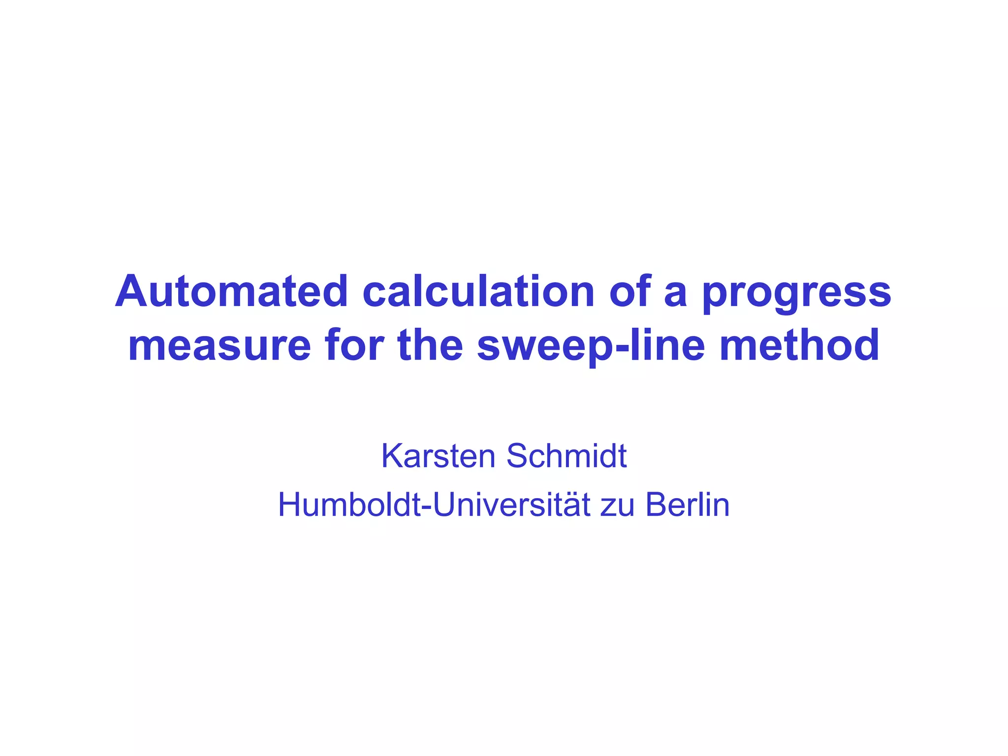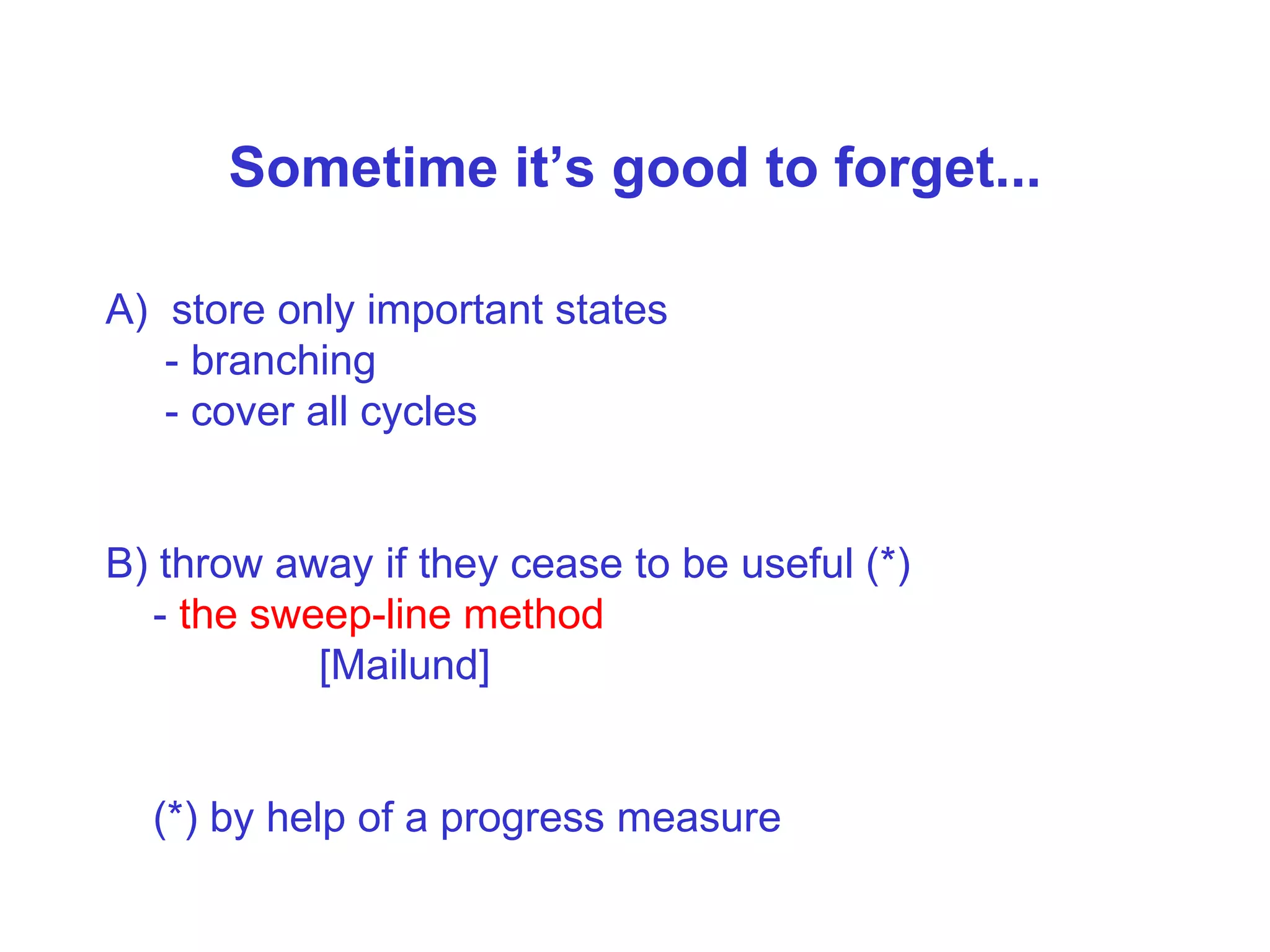 The document discusses calculating a progress measure for the sweep-line method of model checking.