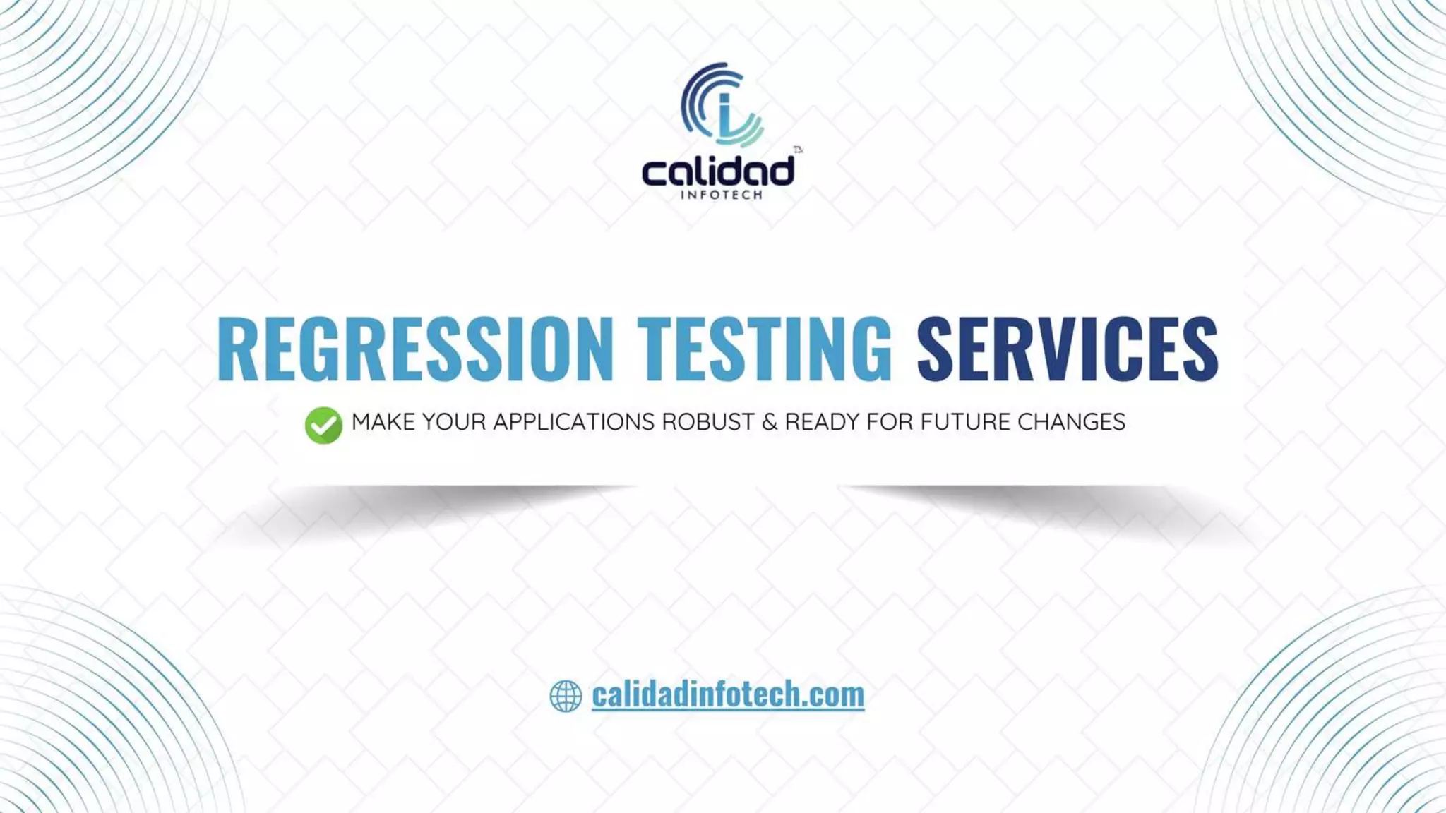 The document promotes Calidad's QA regression testing services designed to enhance software performance by eliminating existing errors and confirming that new features improve user experience. It outlines a step-by-step approach to regression testing, including test selection, automation, application verification, and result analysis. Calidad emphasizes its expertise, custom solutions, and client satisfaction in the field of quality assurance.