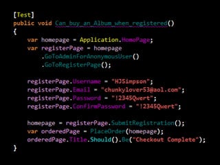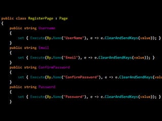 The document discusses best practices for automated UI testing, specifically using tools like Selenium, BDDfy, and Seleno. It highlights common pitfalls such as brittle tests and maintenance issues, providing a structured approach to improve UI tests through methods like page object patterns, page components, and strongly typed objects. The speaker emphasizes the importance of treating test code with the same care as production code to achieve effective and sustainable testing.