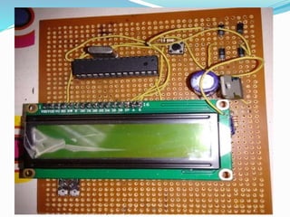 This document presents an automatic bell ringing system using a microcontroller. The system uses a step-down transformer to power the microcontroller and other components. An LCD screen displays the time and schedule. A buzzer sounds according to the programmed schedule, such as every hour. The system is designed to automatically ring a bell in schools and colleges to avoid human errors. It has applications in education, industry, and other areas where an automatic scheduling system is needed.