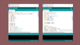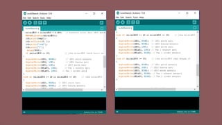 The document describes the design and functionality of an automatic DC fan system for a greenhouse, utilizing an LM35 temperature sensor and Arduino Uno. It outlines the operation of two fans based on temperature readings, with different LED indicators for various temperature ranges. Key components and challenges in setting up the system are also detailed, including the need for a transformer and diode due to current limitations from the Arduino.