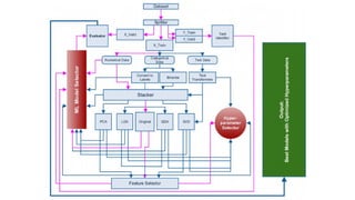 The document provides an overview of Automatic Machine Learning (AutoML), detailing its purpose and methods, including the automation of algorithm selection and hyperparameter tuning to enhance machine learning processes. It highlights various components of the AutoML framework, such as data preprocessing and model selection, and discusses recent advancements like the Auto-Net system that achieved high performance in a competitive setting. Overall, the document emphasizes the growing significance of AutoML in facilitating machine learning for non-experts and its potential to challenge existing methodologies.