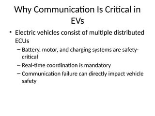 #5 Automatic CAN communication allows decentralized control, which is essential for safety-critical EV operations.