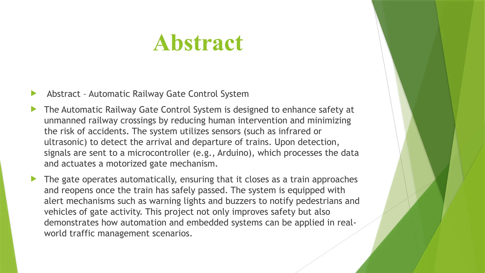 The Automatic Railway Gate Control System is designed to enhance safety at