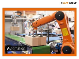 The document discusses a case study focused on the automation of machine operations through the use of various specialized cables. It outlines the challenges faced in controlling machinery and data transmission, and presents solutions with LAPP's customized cables ensuring performance and safety. Additionally, it highlights the value added by providing superior flexibility and durability of cables for specific applications.