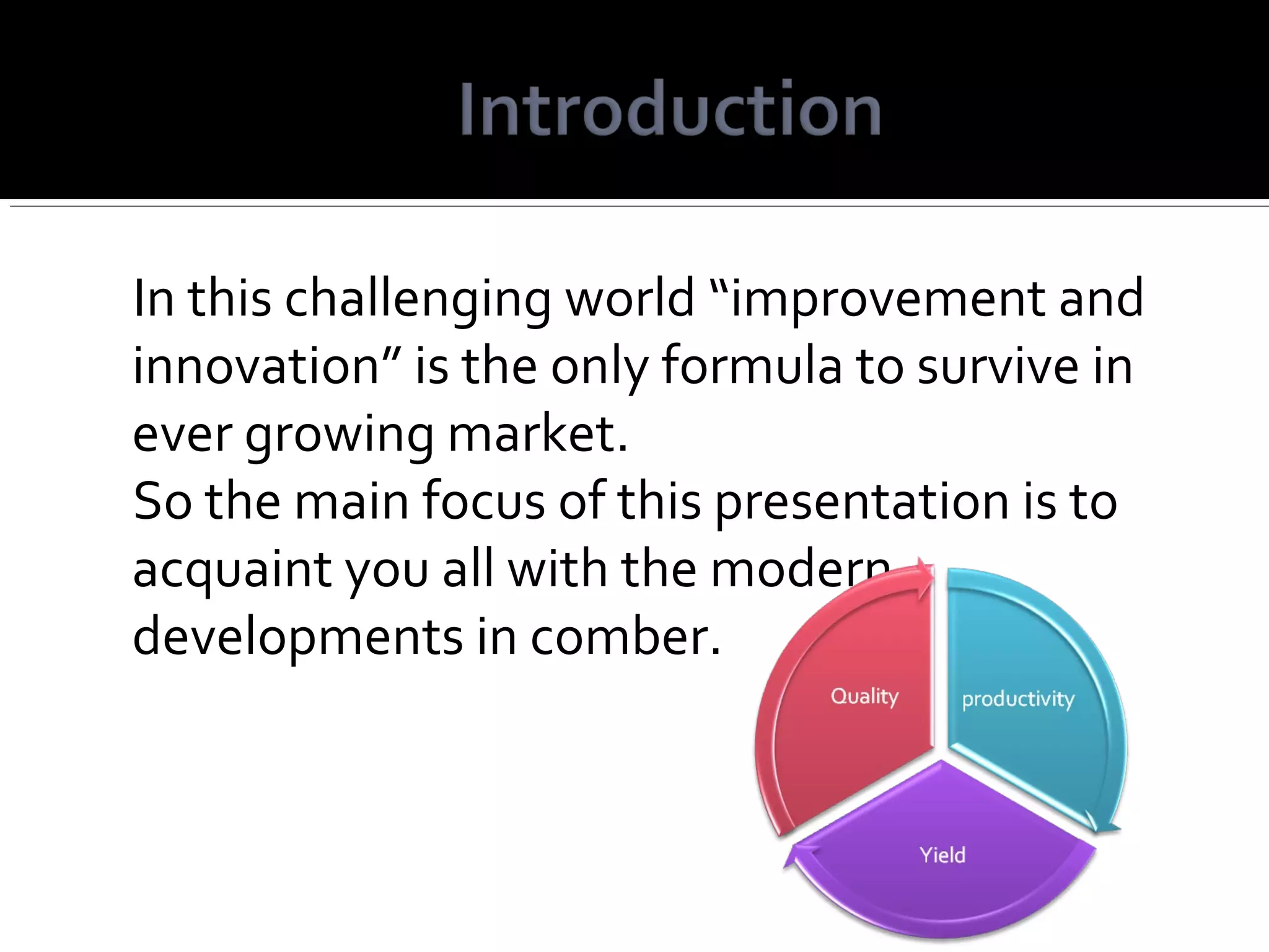 This document summarizes recent developments in combers, which prepare cotton fibers for spinning. It describes modern combers that have improvements such as higher production rates up to 520kg/hr, better fiber orientation and batt structure, even tension lapping systems, and fully automated servo trolleys. Key components like nippers, combs, and detaching rollers have also been updated with advances like reduced vibrations, self-cleaning techniques, and finer tooth configurations for improved combing quality and fiber waste reduction.