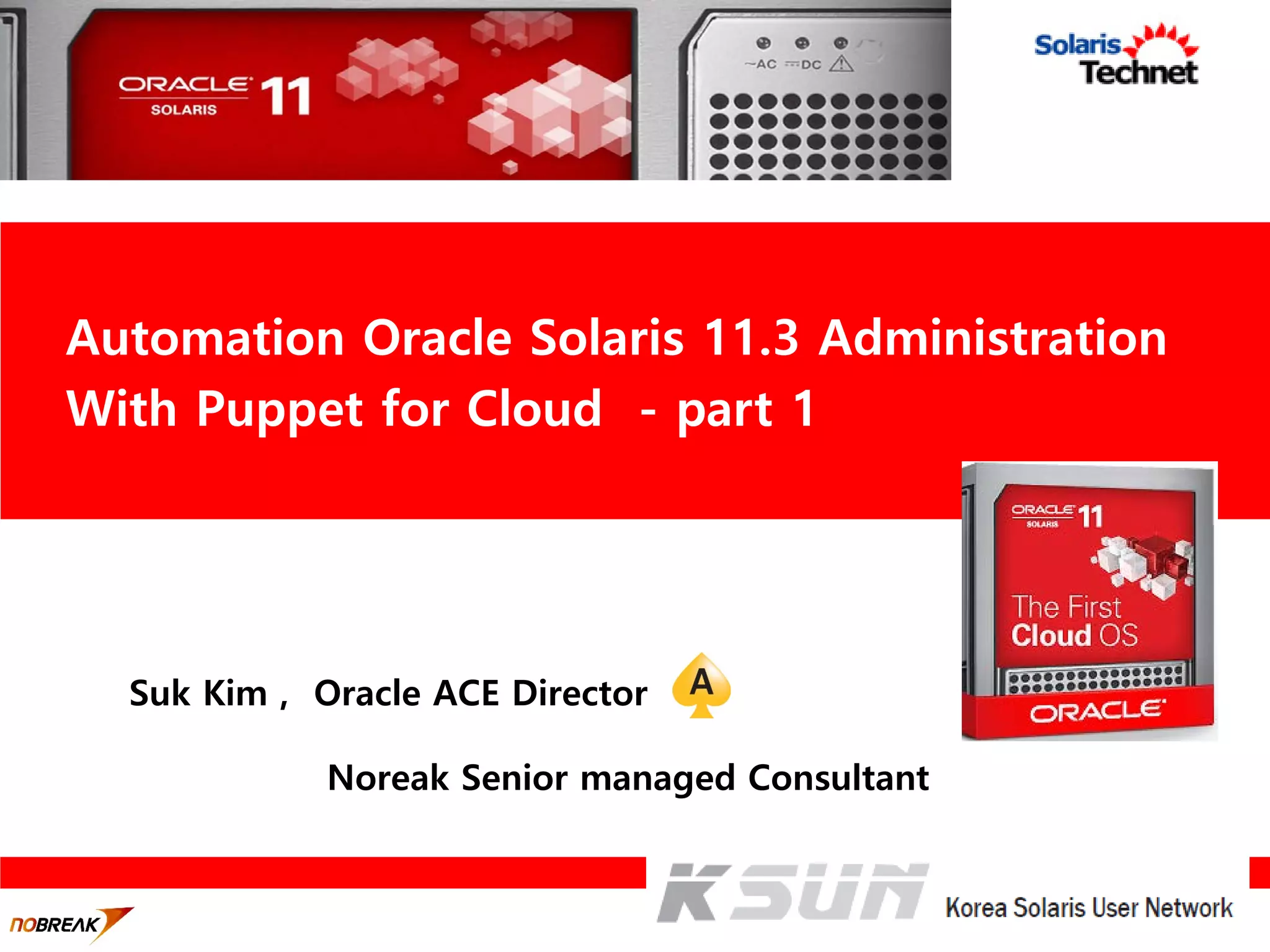 Oracle ACE Director Noreak Senior managed Consultant Automation Oracle Solaris 11.3 Administration With Puppet for Cloud - part 1
