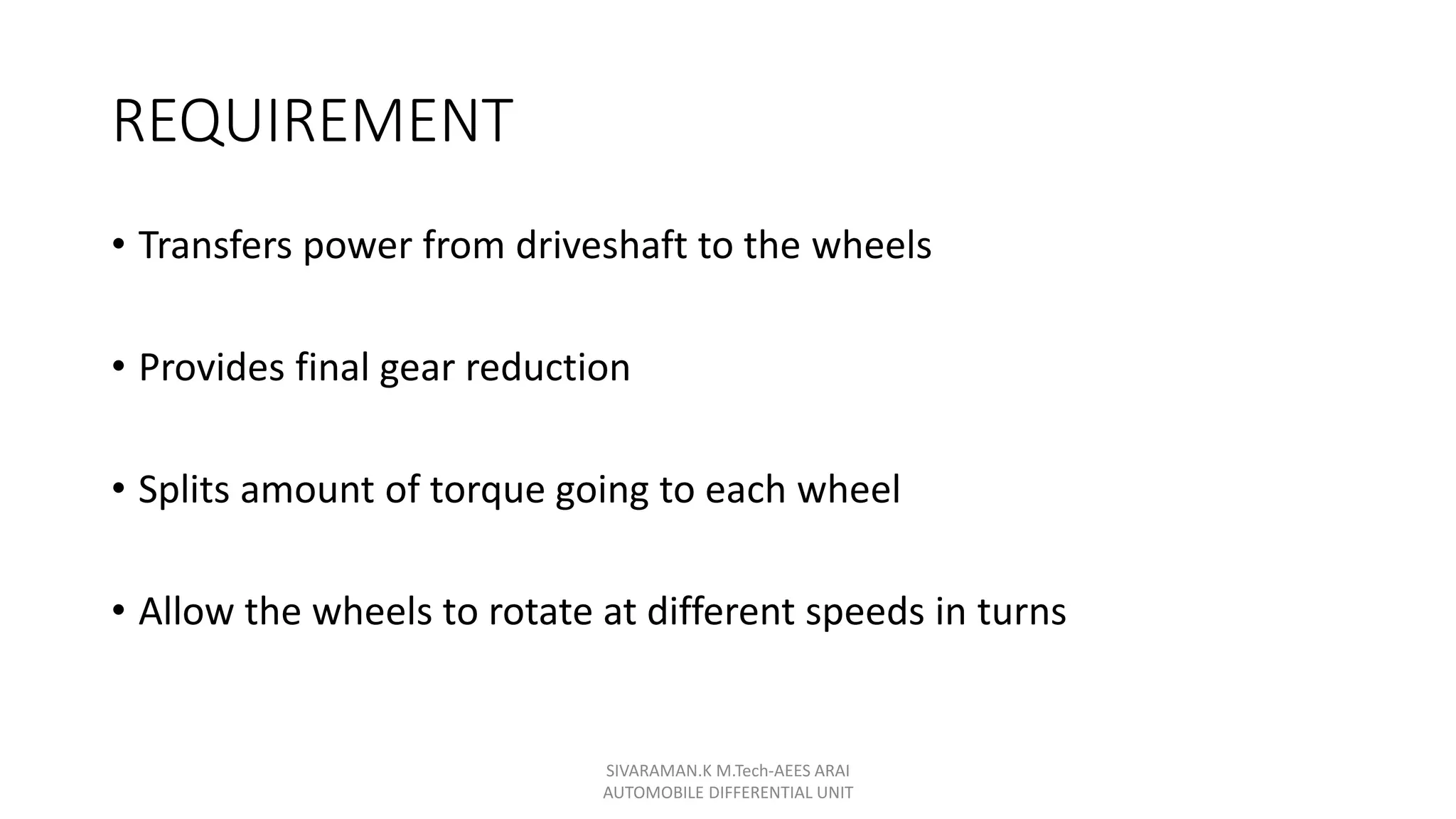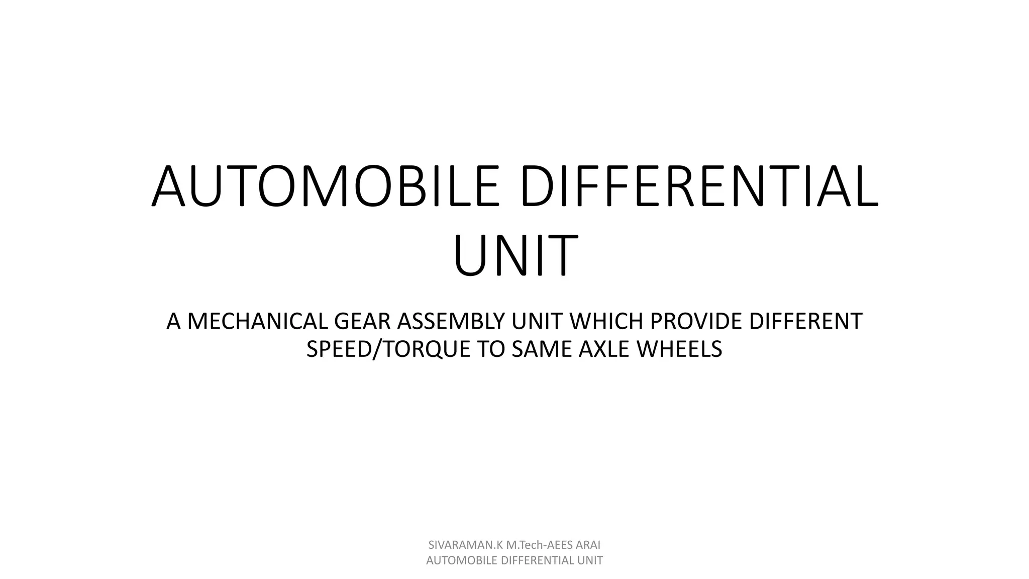 The document provides an overview of the automobile differential unit, detailing its functions, historical development, types, and components such as open, locked, active/electronic, and limited slip differentials. It outlines the mechanics of how these differentials enable distinct wheel speeds and torque distribution, particularly during turning and traction scenarios. Additionally, the document discusses maintenance procedures and common problems associated with differentials.