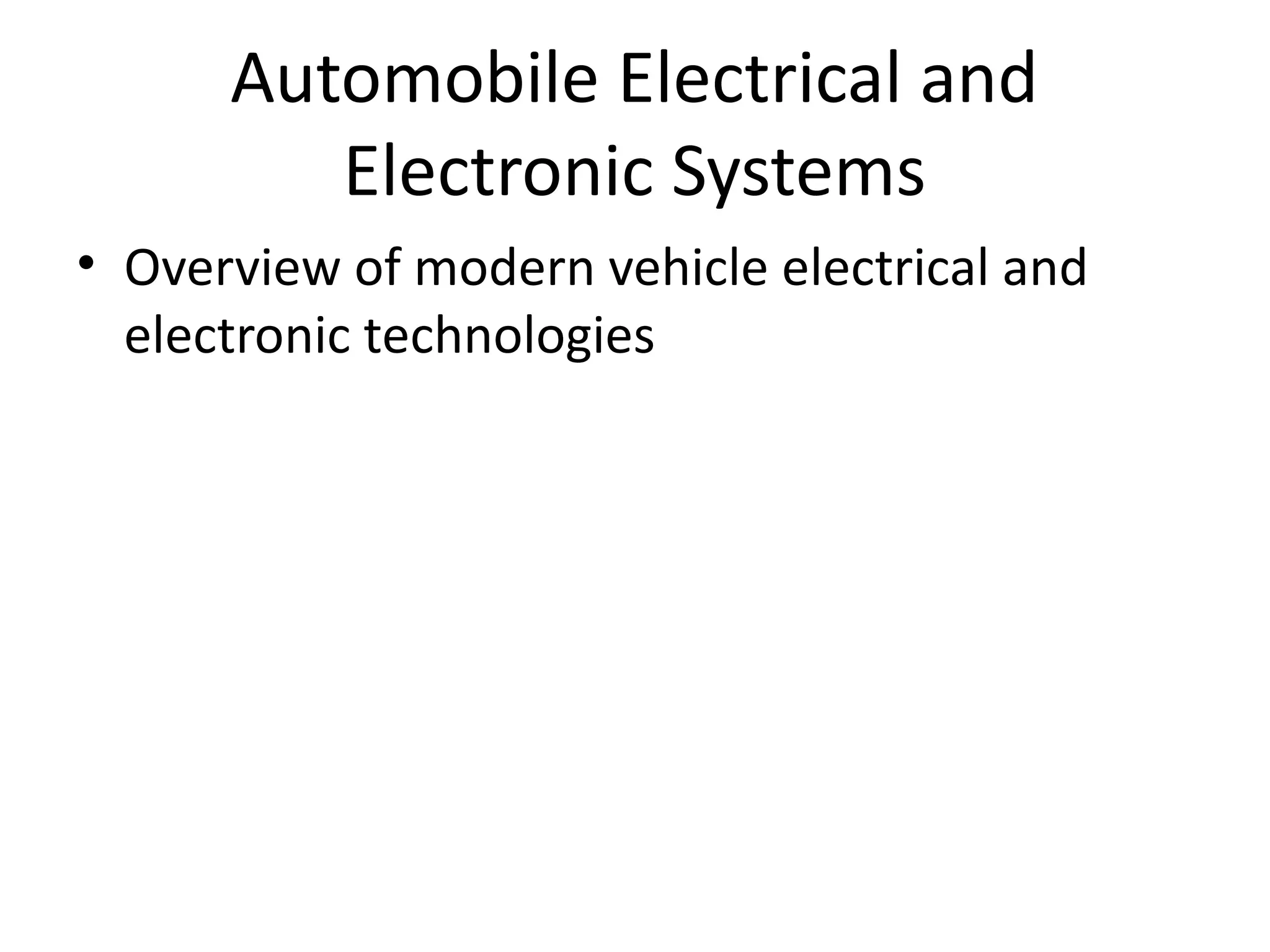 Systems • Overview of modern vehicle electrical and electronic technologies