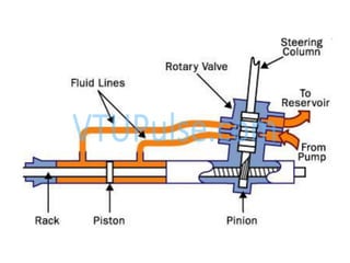 • The piston, in turn, is connected to the steering linkage and