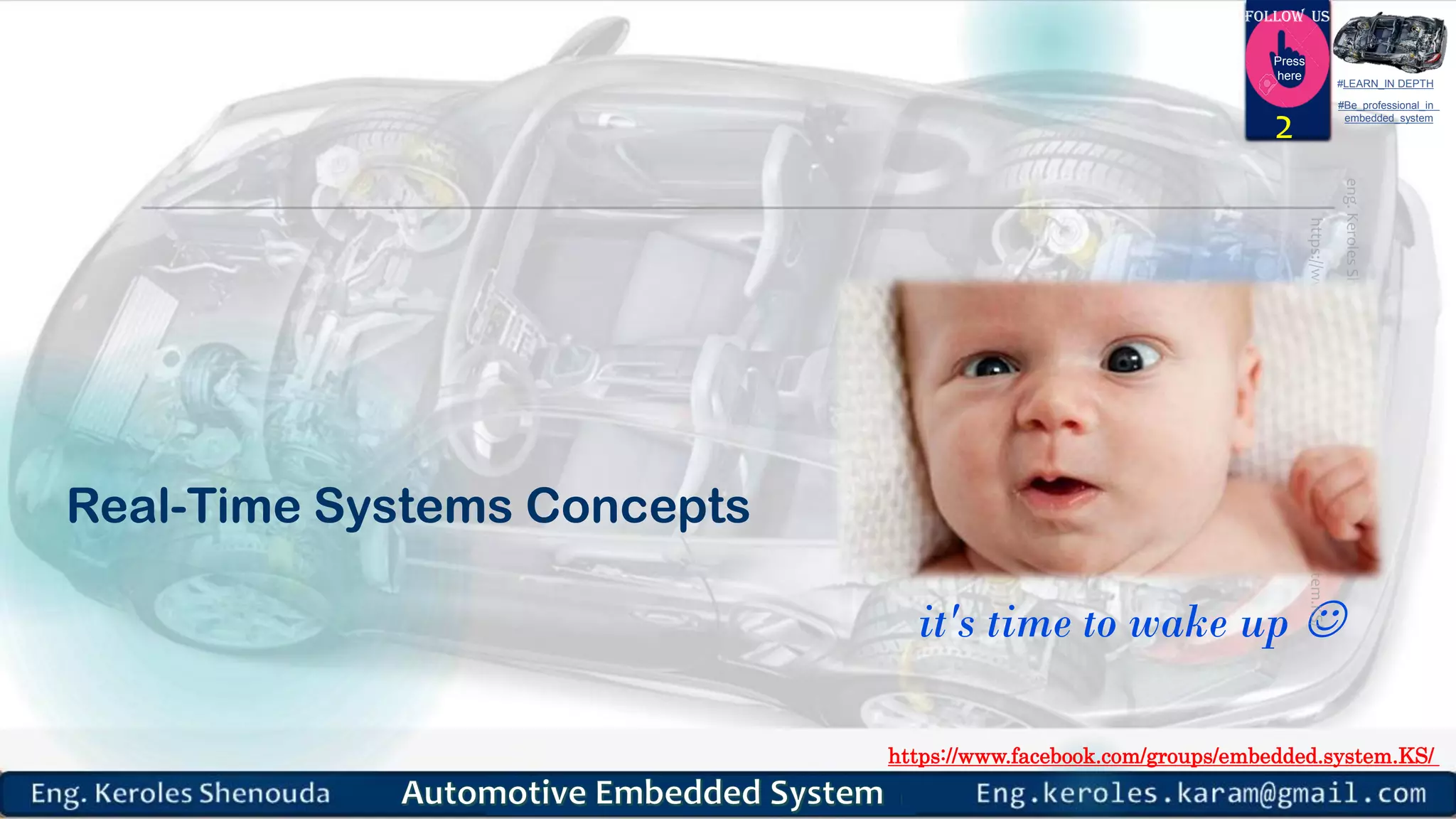 The document discusses various topics related to embedded systems and real-time operating systems (RTOS), including: