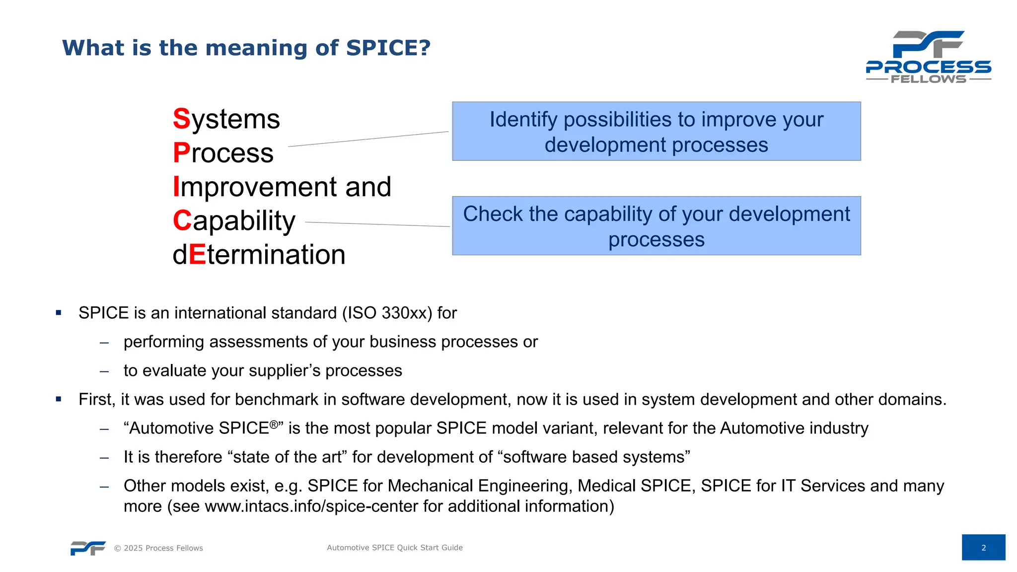 Welcome to this short introduction of SPICE, and in particular to Automotive SPICE®. The goal of this presentation is to give you a quick start guide for understanding what is it about, what is the motivation for using it and how is it typically used in industry. Whether you're an engineer, a designer, a quality assurance engineer, or just someone who's really into cars, we wanna help you understand the core ideas. We're gonna pull out the essential insights so you can get the big picture without getting lost in the details.