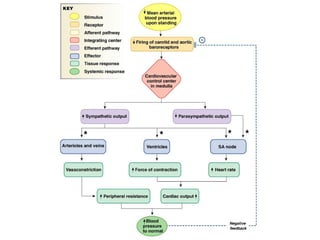 The document describes four autonomic function tests related to the cardiovascular system: 1) Heart rate variation during respiration measures vagal control of heart rate, 2) Heart rate variation during postural change assesses parasympathetic response, 3) The Valsalva maneuver evaluates sympathetic and parasympathetic function by measuring blood pressure and heart rate responses to forced exhalation, 4) The cold pressor test increases blood pressure by submerging a hand in ice water to stimulate the sympathetic nervous system. These tests are used to evaluate autonomic nervous system integrity.