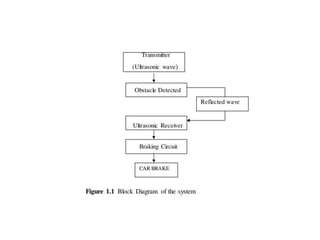 An autonomous emergency braking system can help reduce accidents by intervening to brake independently of the driver when critical situations are detected. The system uses ultrasonic sensors and a camera to measure the speed of vehicles ahead and activate the brakes if a collision is likely to occur due to the driver braking too late or unexpectedly. While this can help avoid accidents and reduce injury, some disadvantages are the increased cost and loss of total vehicle control. The system works by sensors detecting obstacles, a microprocessor calculating braking needs, and activating the brakes if needed to avoid a collision.