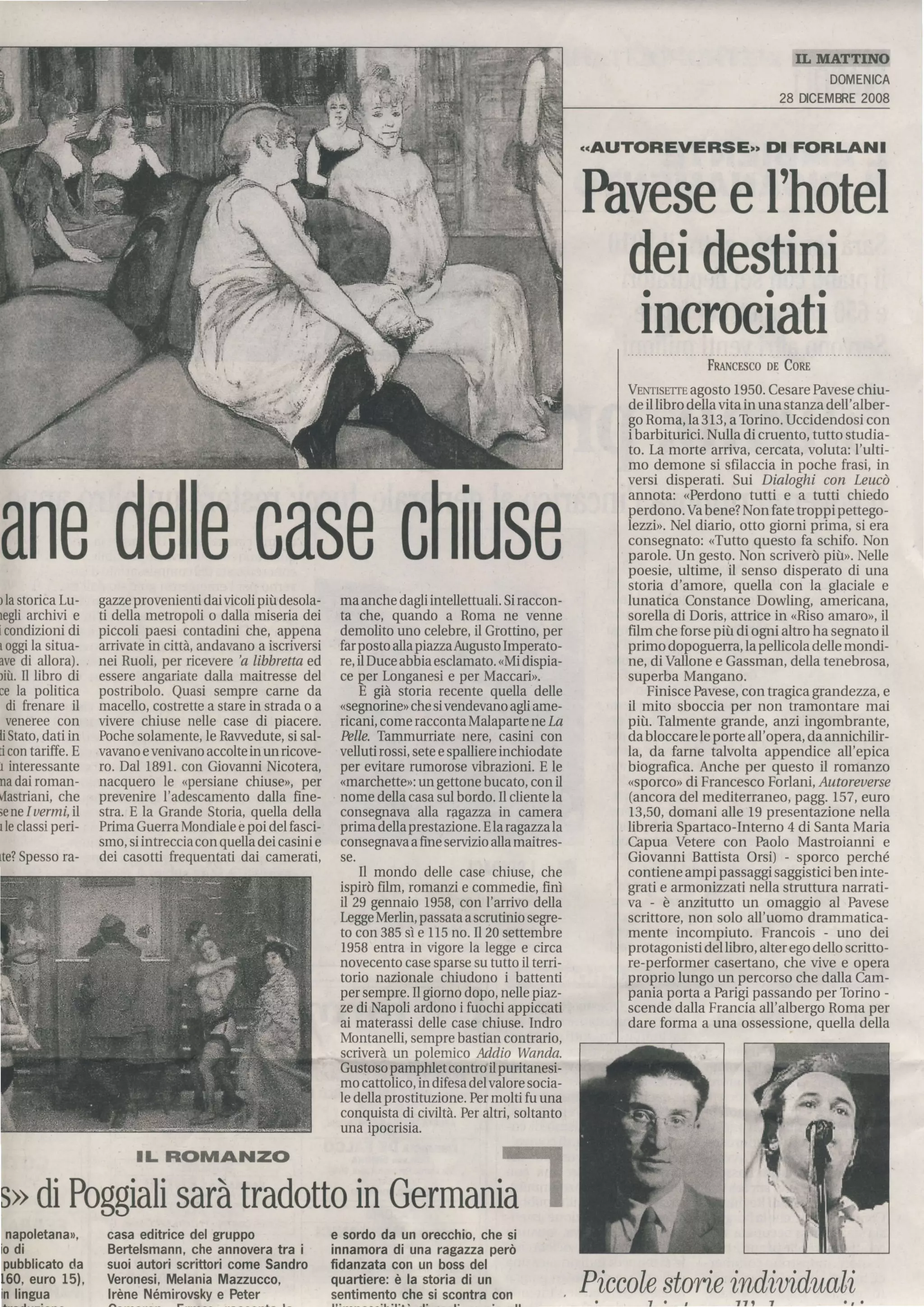 Il documento esplora la vita e la morte di Cesare Pavese, mettendo in evidenza il suo ultimo periodo di vita e le sue opere, in particolare i dialoghi con Leucò. Si parla della sua disillusione rispetto alla società e all'amore, con riferimenti a esperienze in case chiuse e alla drammatica condizione umana. La narrazione si intreccia con una riflessione sul mito e sulla bellezza della vita, rendendo omaggio alla complessità dell'esperienza di Pavese.