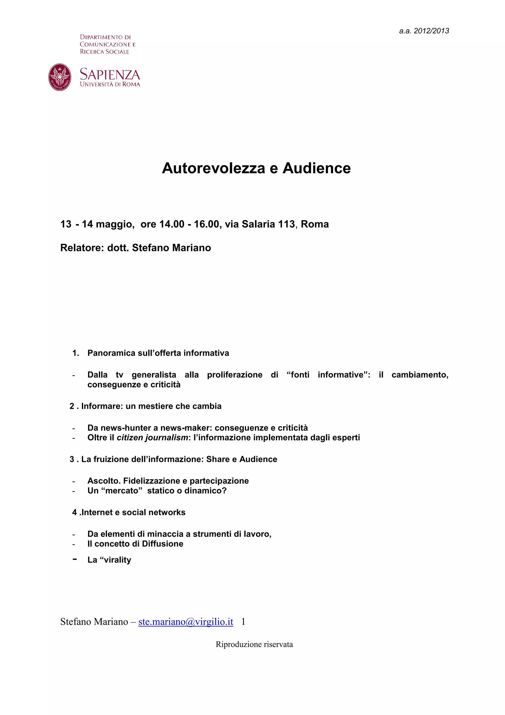 Il documento analizza l'evoluzione dell'offerta informativa nei media, evidenziando il passaggio dalla televisione tradizionale a una varietà di fonti informative, principalmente a causa della diffusione di Internet. Si discute l'impatto del citizen journalism e delle nuove tecnologie sulla fruizione delle notizie, mettendo in risalto come gli utenti siano diventati attivi co-creatori di contenuti. Nonostante il declino degli ascolti per le televisioni generaliste, la televisione mantiene una posizione dominante nel panorama informativo, fungendo da principale interfaccia per l'accesso ai contenuti.