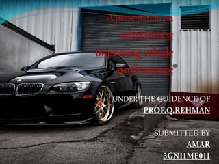 This document provides an overview of automotive electronics or autotronics. It discusses the history of electronics in vehicles from engine control units in the 1970s to modern innovations like GPS and wireless connectivity. The main systems involved in autotronics that improve vehicle performance are the braking, steering, suspension, transmission, and engine systems. Adaptive cruise control and airbags are two safety features that rely on electronic sensors and controls. Implementing electronics in vehicles provides advantages like improved efficiency, reliability, safety, and reduced emissions compared to mechanical systems alone.