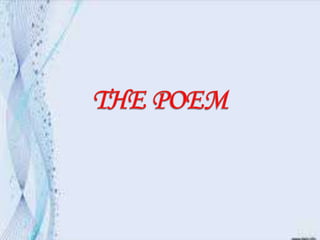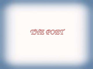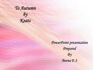 The document is a PowerPoint presentation about the poem "To Autumn" by John Keats. It provides biographical information about Keats and discusses the structure and themes of the poem. "To Autumn" was composed in 1819 and published in 1820, consisting of three 11-line stanzas in iambic pentameter that celebrate the bounty of the autumn harvest season. The poem depicts Autumn as a figure that aids the ripening of fruits and swelling of grains until the harvest is complete.