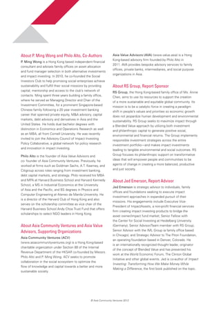 This report summarizes the findings of the EngageHK initiative, which mapped Hong Kong's social sector ecosystem. Over 100 leaders from 80 organizations were interviewed across sectors like non-profits, social enterprises, foundations, and government. Key findings include a lack of collaboration between stakeholders that results in duplicated efforts. The report recommends fostering cross-sector dialogue and partnerships, focusing on both social and economic benefits, creating platforms to share ideas and resources, promoting transparency, and defining an enabling role for government. The goal is to build a more collaborative social ecosystem that increases collective impact for a sustainable future.
