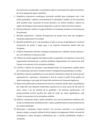 · Per als blocs V funcions i gràfiques i VI estadística, els continguts conceptuals seran el 70% de