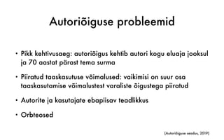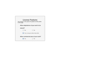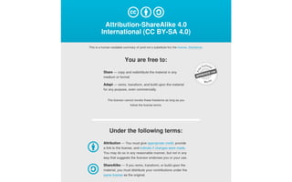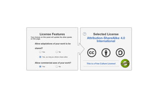 This document provides an overview of open education and creative commons licenses. It begins by discussing some issues with copyright law, including long duration of copyright and limited reuse options. It then introduces Creative Commons licenses and describes the types of licenses available. The document explains how works can be marked with licenses and provides examples of Creative Commons icons. It also discusses open educational resources and the open education movement. Examples of open educational resources repositories and collections are provided. The document emphasizes that teachers, authors and organizations should share educational materials using open licenses to allow reuse and adaptation. It recommends that governments and institutions prioritize and support open education.