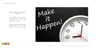 This document discusses how a company can help businesses take their company to the next level. They will create a solid plan, provide guidance to implement strategies for growth. Their services include helping with marketing, managing projects and execution, and providing operational support like a "clone" to free up the business owner. The goal is to help the business owner serve more clients, do great work, and love their company again by taking it to the next level.