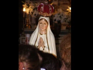 Our Lady of Fatima is a title given to the Virgin Mary based on reported apparitions to three shepherd children in Fatima, Portugal in 1917 on the 13th day of six consecutive months starting in May. The children were shown secrets and visions of hell, and Our Lady asked them to pray the rosary and for the conversion of sinners.