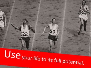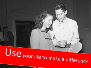The document encourages the reader to live up to their potential and not let fears or social pressures hold them back. It says the reader's mother wanted them to have the moon and their teacher wanted them to do their best, implying the reader is special and not average. It suggests the reader discover their talents and contribute to making others happy, which will in turn make the reader feel happy and alive. The overall message is for the reader to impact others positively and not settle for being average.