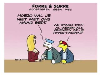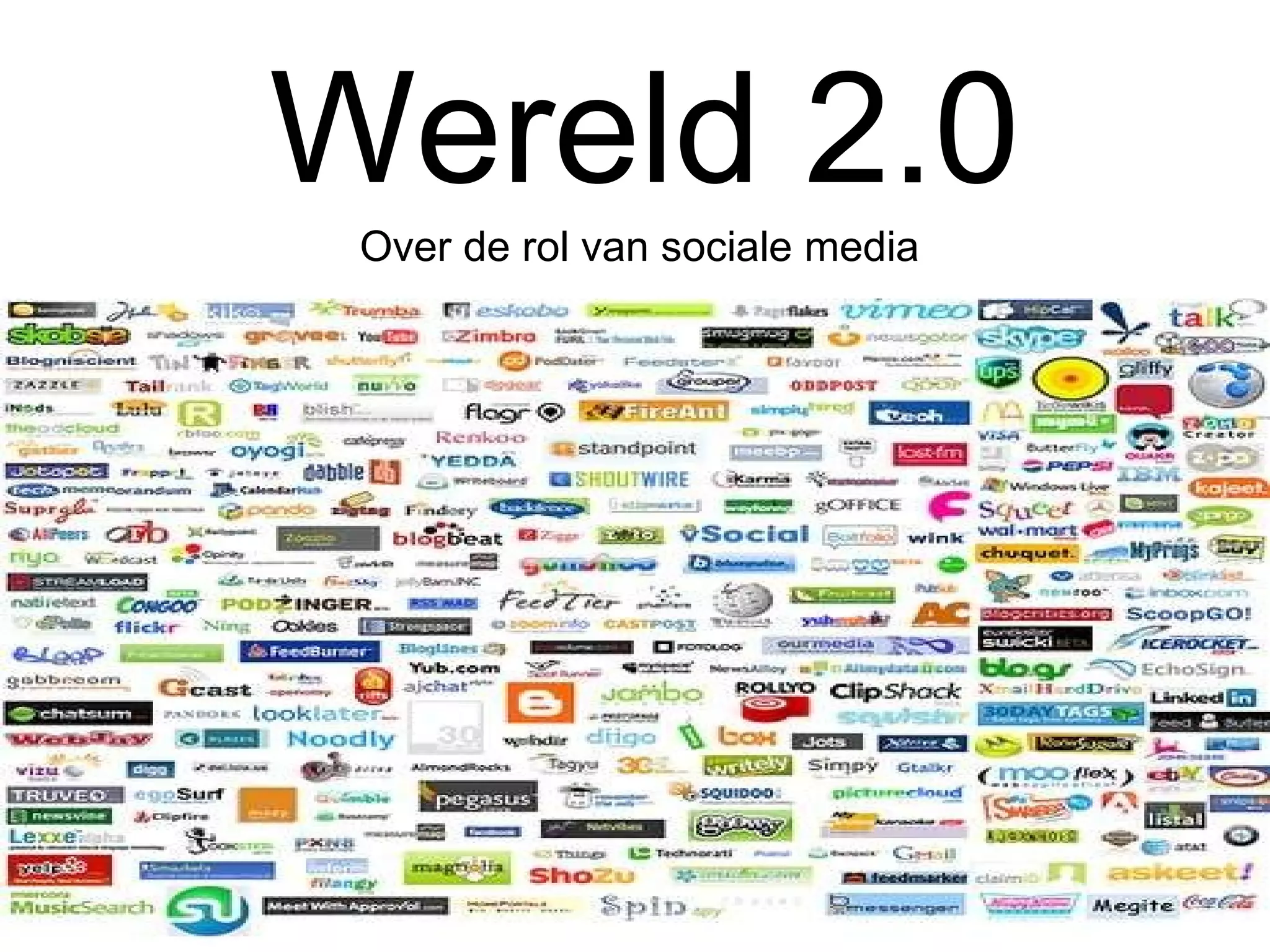 Web2.0 heeft dewereld veranderd! Wist je dat: Tot 2009 was de nr 1 tijdsbesteding op internet : porno Sinds 2010: social media Een op de vijf Nederlanders heeft baan, partner, klant of huis gevonden via sociale media Facebook is het derde land ter wereld Van de westerse bevolking jonger dan dertig heeft 96% ergens een profiel Van alle bedrijven gebruikt 80% enige vorm van sociale media Etcetera