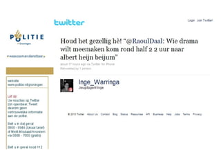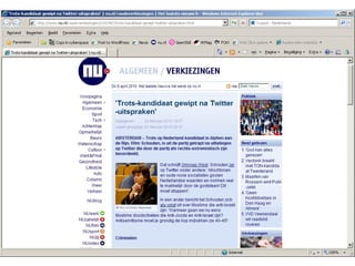 “ Nummer 1nieuwsbron” 75 miljoen tweets per dag Een op drie volgt merk/bedrijf Kwart heeft nauwelijks followers