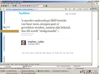 Vijf belangrijkste socialemedia NL: 4+ mln W: 500 mln Sinds 2004 Sinds 2005 NL: 1,2 mln W: 156 mln Sinds 2007 NL: 8,5 mln W: 10,5 mln Sinds 2004 NL: 2+ mln W: 75 mln Sinds 2003