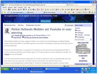 Zes trends in2.0 Grenzen vervagen Hiërarchisch, geografisch, cultureel, organisatorisch Verniching samenleving Iedereen heeft eigen sociale netwerken Hier en nu Life = live 24/7 online