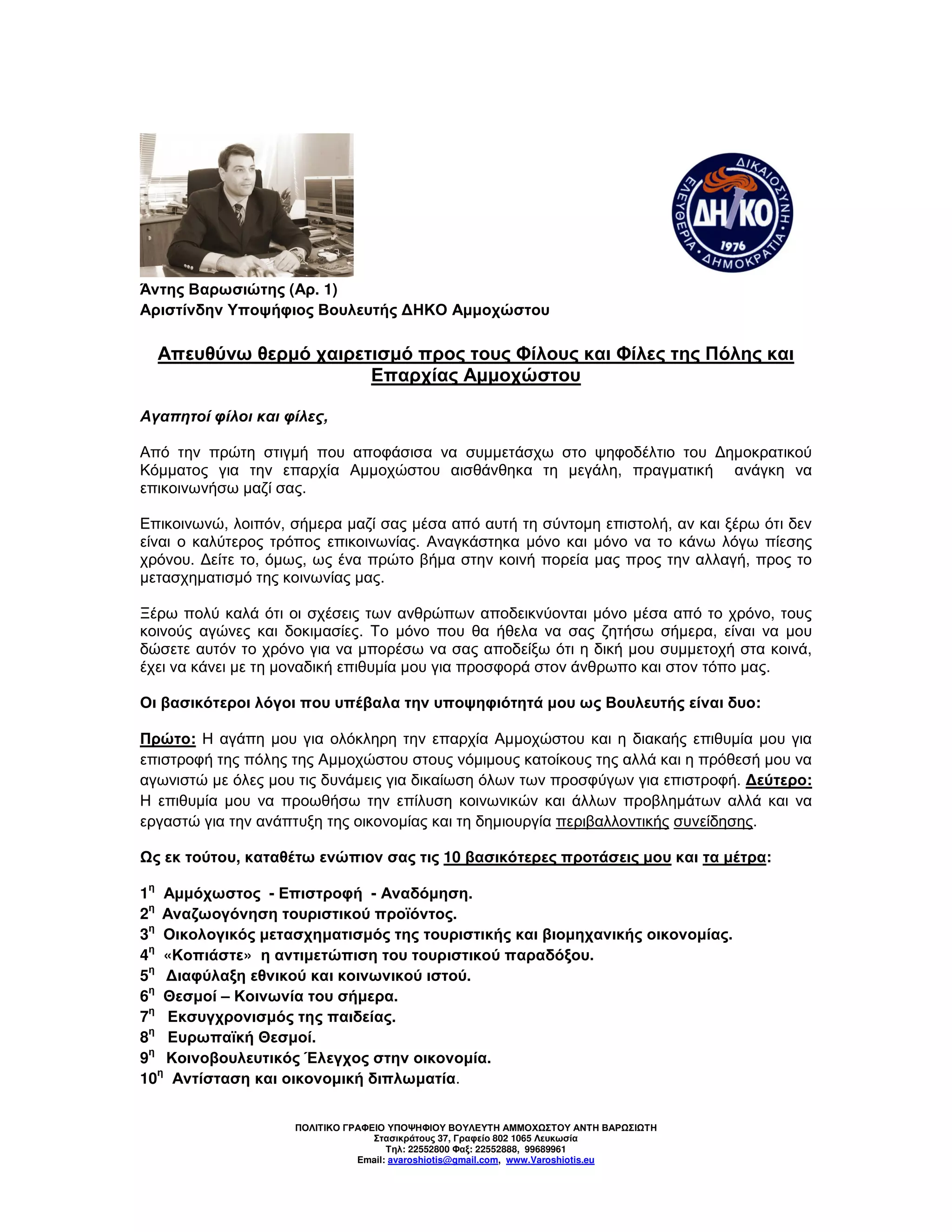 Πρώτο: Η αγάπη µου για ολόκληρη την επαρχία Αµµοχώστου και η διακαής επιθυµία µου για