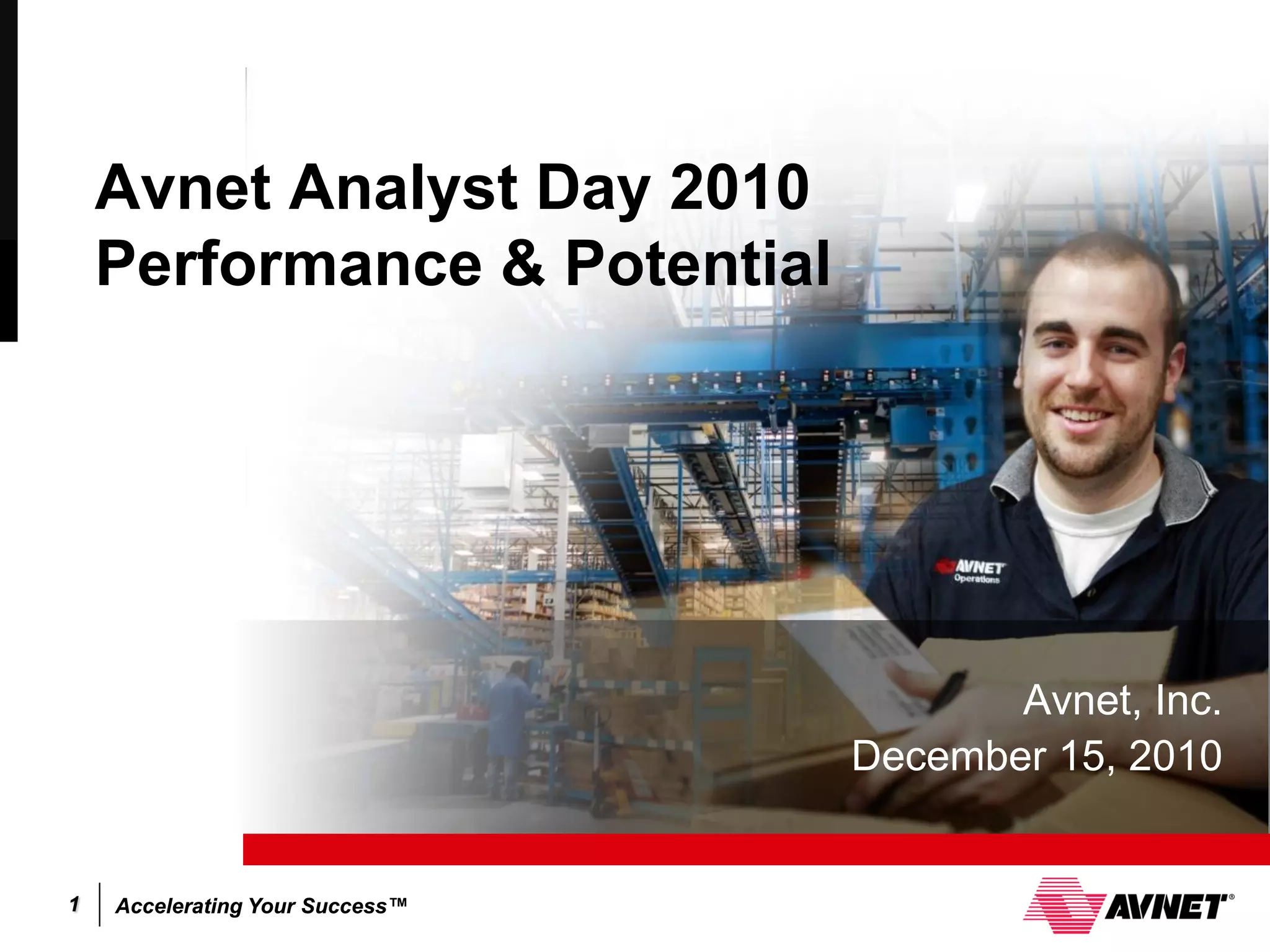 The document summarizes Avnet's analyst day presentation which outlined the company's mission, market opportunities, growth strategies, and leadership. It notes that Avnet aims to be the most successful electronics components distributor by providing best-in-class design and supply chain solutions. It identifies a sizable $291 billion total addressable market and $10.9 billion distribution market opportunity. Avnet's strategies focus on growing its design chain solutions, supply chain solutions, business in Asia and Japan, e-commerce offerings, and IP&E portfolio to capitalize on projected industry growth through 2013.