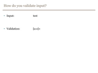 The document discusses avoiding cross-site scripting (XSS) attacks. It notes that while some experts say XSS protection is easy, it can actually be challenging. It provides statistics on how common XSS errors are. It then discusses the risks of XSS attacks, including stealing data from clients or servers and exploiting browsers. It explains different types of XSS attacks and demonstrates examples. The document emphasizes the importance of input validation and output encoding to prevent XSS. It also discusses challenges like DOM-based XSS and provides recommendations for developing secure code.