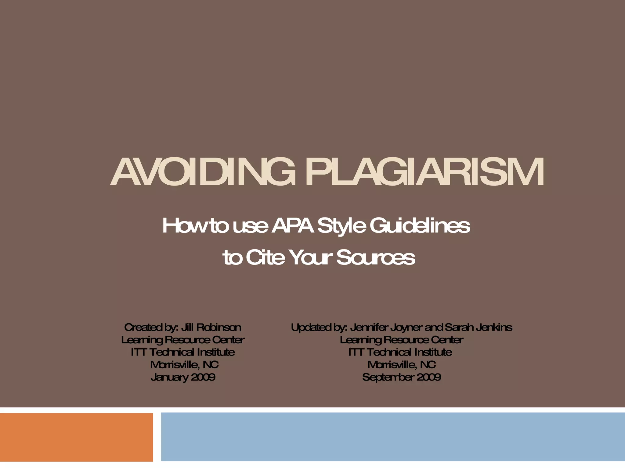 The document discusses how to properly cite sources and avoid plagiarism when writing a research paper using APA style guidelines. It covers integrating outside sources, creating in-text citations, and compiling a reference list. Key steps include paraphrasing and summarizing sources, citing sources in the body of the paper using the author's name and date, and listing full references alphabetically at the end of the paper. Online resources for citing sources are also provided.
