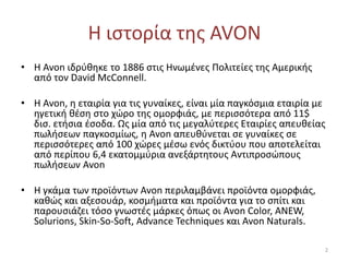 • Η Avon, θ εταιρία για τισ γυναίκεσ, είναι μία παγκόςμια εταιρία με