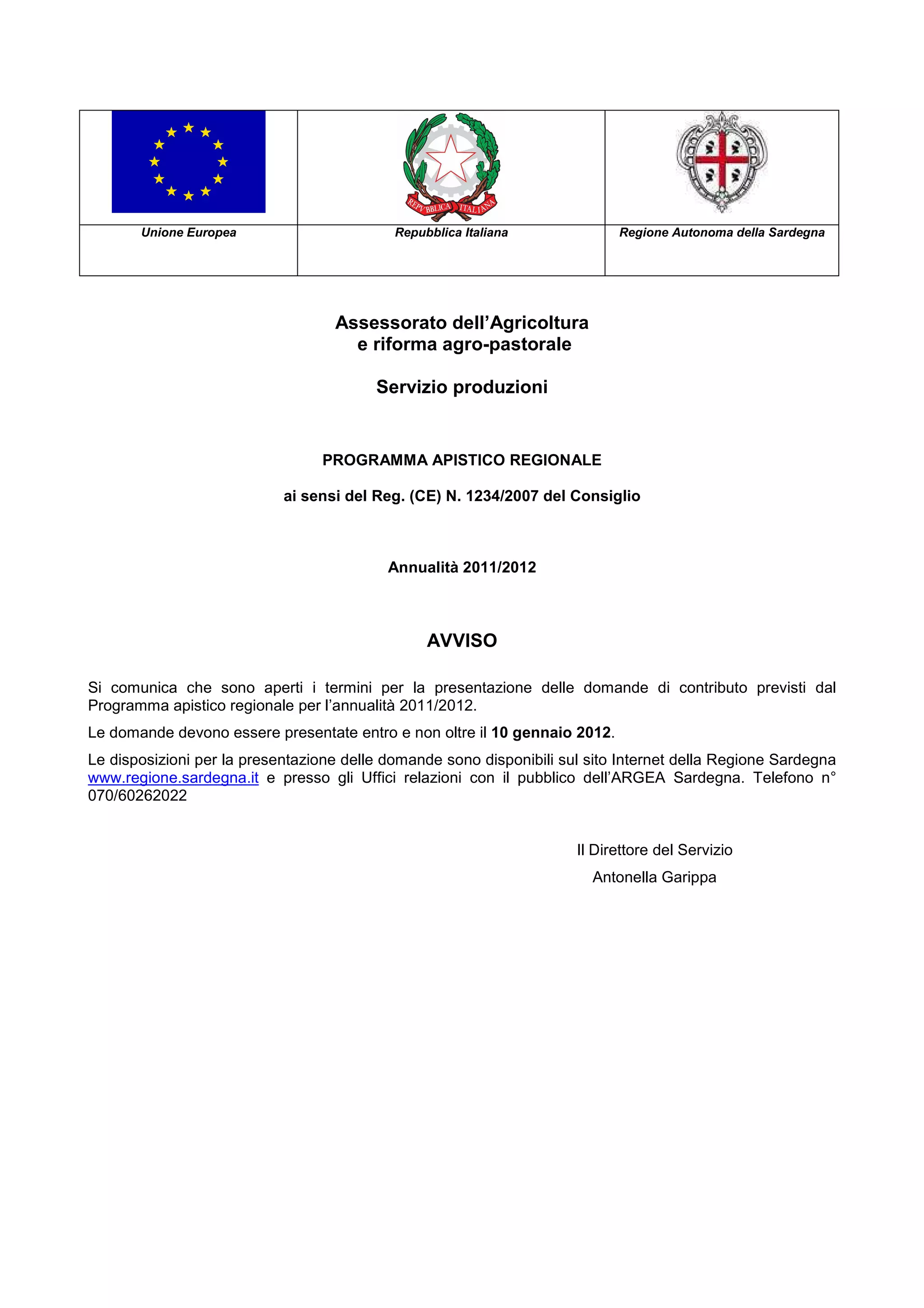 Sono aperti i termini per la presentazione delle domande di contributo per il programma apistico regionale 2011/2012 in Sardegna. Le domande devono essere inviate entro il 10 gennaio 2012. Ulteriori informazioni sono disponibili sul sito della Regione Sardegna e presso gli uffici relazioni con il pubblico.