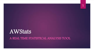 AWStats is a log analyzer tool that provides real-time web, FTP, mail and streaming server statistics. It analyzes server log files to generate advanced reports on metrics like visits, visitors, traffic and bandwidth. The tool requires access to server log files and the Perl script. It can be set up for various web and internet servers to dynamically view statistics through a web browser or command line interface.