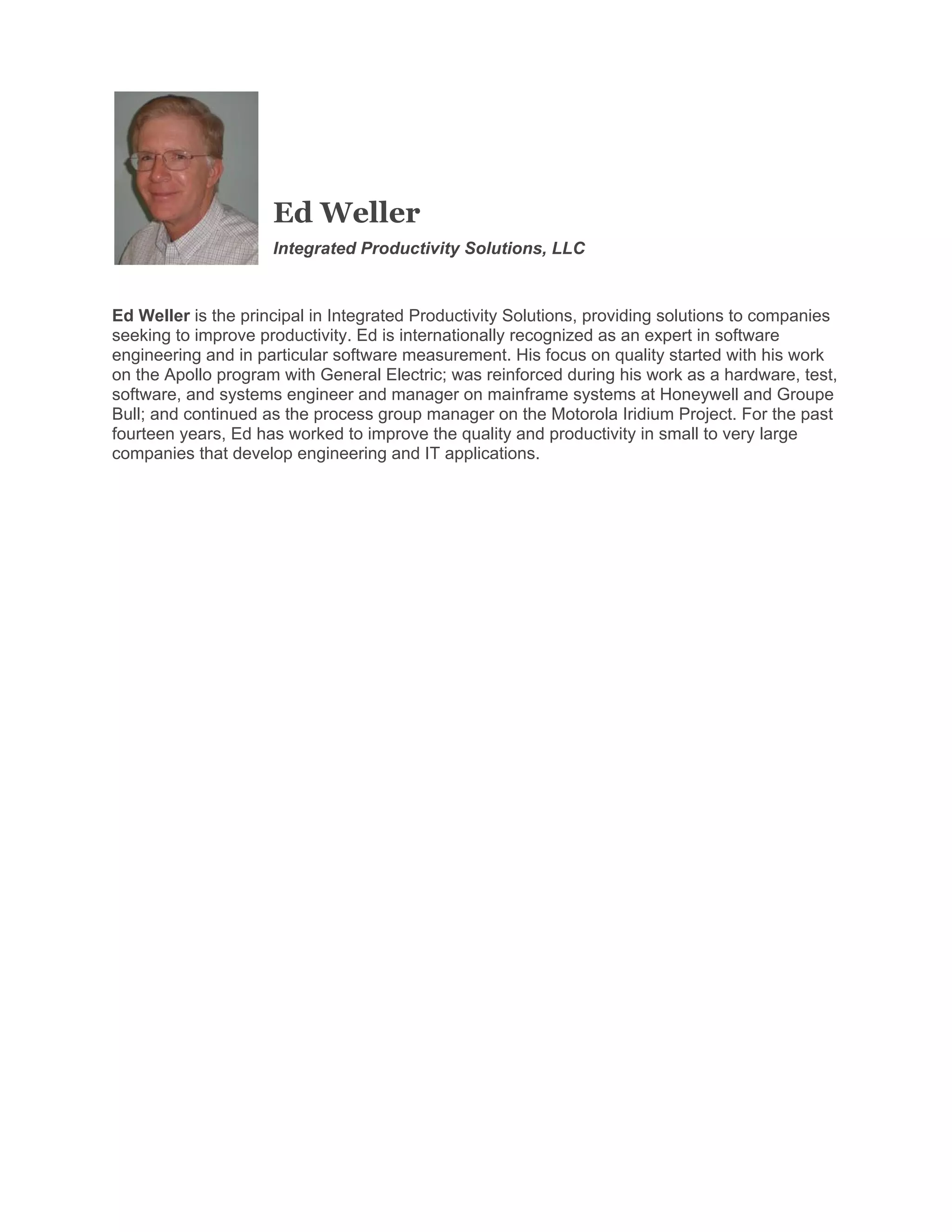 The document presents insights from Ed Weller on the relationship between Agile methodologies and CMMI frameworks, addressing common biases, misunderstandings, and the potential overlap between the two approaches. Weller emphasizes the need for organizations to adapt CMMI practices to support their Agile processes rather than viewing them as restrictive. He concludes that while CMMI can provide valuable guidance and structure to software development, the cost of formal CMMI appraisals should be carefully considered against business needs.