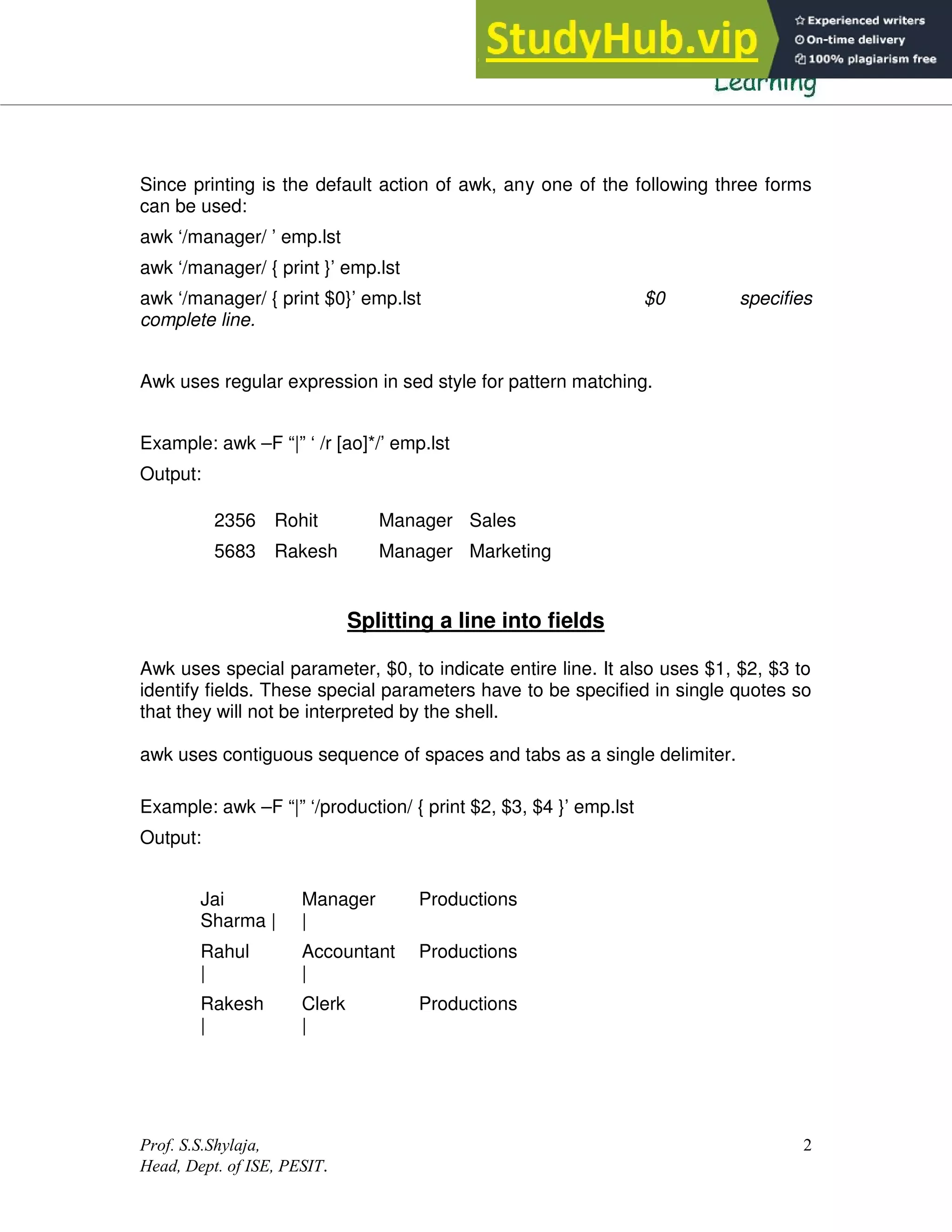 - Built-in variables like NR (record number), NF (number of fields) for processing files
